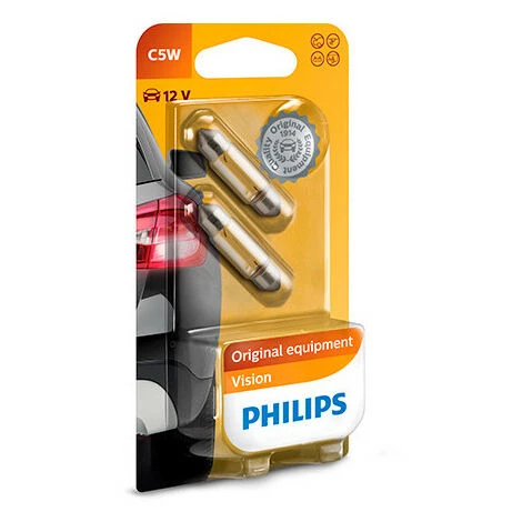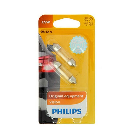 - Éclairage automobile : 2 Ampoules Vision C5W – 12 V – SV8,5 – 5W – Eclairage de plaque – Plafonnier – Boîte à gants – Coffre – Philips