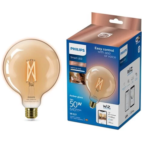 Cette ampoule LED intelligente Philips convient aux ampoules dotĂ©es d’un culot E27. La source lumineuse sphĂ©rique ambrĂ©e de 7 watts fournit une lumière blanche rĂ©glable avec un rendement lumineux de 640 lumens. La source lumineuse a une durĂ©e de vie allant jusqu’Ă 15 000 heures et un diamètre de 12,5 centimètres. Vous pouvez contrĂ´ler la lampe avec l’application Wiz via votre rĂ©seau Wi-Fi ou par la voix. En outre, la lampe rĂ©pond aux exigences EyeComfort, ce qui signifie que la lumière est agrĂ©able pour les yeux. Vous recherchez d’autres Ă©clairages intelligents Philips ? DĂ©couvrez la gamme dans nos magasins Brico et BricoPlanit ou en ligne.