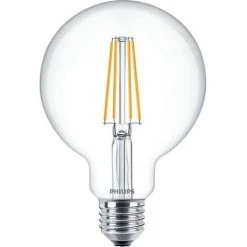 Ampoule LED E27 à filament apparent, spécialement conçue pour remplacer les anciennes ampoules à incandescence de 60W. D’une puissance de 8W, elle est compatible avec tous les luminaires à douille E27. Elle émet 806 lumens en blanc chaud 2700K, soit un excellent rendement lumineux de 100 lm/W. Ampoule E27 de classe énergétique A+ permettant de réaliser jusqu’à 90% d’économies d’énergie par rapport à une ampoule halogène ou à incandescence traditionnelle. Éclairage LED garanti sans rayonnements nocifs, fonctionne sous 220-240V.