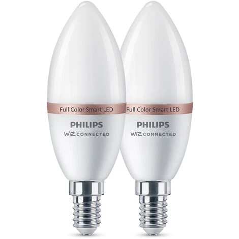Cette ampoule LED intelligente Philips convient aux ampoules dotées d’un culot E14. La source lumineuse en forme de bougie de 4,9 watts fournit une lumière blanche et colorée réglable avec un rendement lumineux de 470 lumens. La source lumineuse a une durée de vie allant jusqu’à 15 000 heures et un diamètre de 3,9 centimètres. Vous pouvez contrôler la lampe avec l’application Wiz via votre réseau Wi-Fi ou par la voix. En outre, la lampe répond aux exigences EyeComfort, ce qui signifie que la lumière est agréable pour les yeux. Le paquet contient deux pièces. Vous recherchez d’autres éclairages intelligents Philips ? Découvrez la gamme dans nos magasins Brico et BricoPlanit ou en ligne.