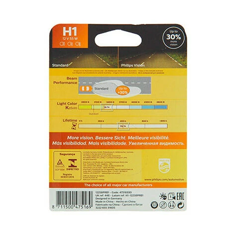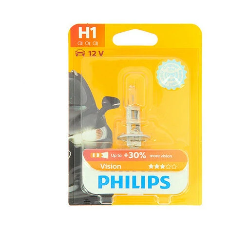 - Éclairage automobile : Ampoule Vision H1 – 12 V – P14,5s – 55W – Feux de route – Feux de croisement – Feux antibrouillard – Philips