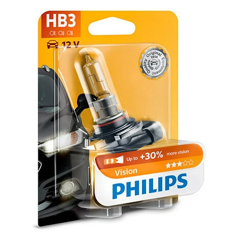 - Éclairage automobile : Ampoule Vision HB3 – 12 V – P20d – 60W – Feux de route – Feux antibrouillard – Feux de croisement – Philips