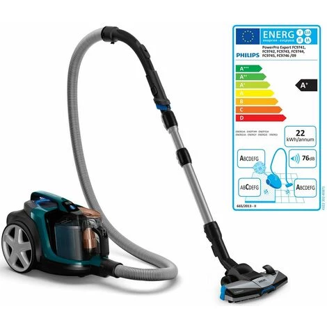 Aspirateur sans sac PowerPro Expert Philips FC9744/09 conçu pour aspirer parfaitement la poussière.Les poussières fines sont piégées grâce à Allergy LockLe Philips PowerPro Expert est conçu pour produire des résultats impeccables, grâce à une aspiration puissante. La technologie PowerCyclone 8 et notre brosse TriActive+ offrent des résultats exceptionnels sur tous types de sol.Classe énergétique A+Cet aspirateur Philips est conçu pour offrir des performances optimales avec une classe d’efficacité énergétique A+.Puissante action cycloniqueLa technologie exclusive PowerCyclone 8 augmente la vitesse de l’air dans la chambre cyclonique afin de séparer la poussière. Son puissant tourbillon maximise le flux d’air et les performances, pour un nettoyage remarquablement efficace.Triple action de nettoyageNotre brosse exclusive TriActive+ sépare délicatement les brins des moquettes et tapis, pour un nettoyage en profondeur. Les conduites d’air à l’avant aspirent les grosses miettes, tandis que les brosses sur les côtés nettoient au plus près des murs et des meubles.Excellents résultats sur les sols dursCet aspirateur affiche une classe énergétique A pour son nettoyage des sols durs. Cela signifie qu’il aspire 100 % de la poussière qu’il rencontre.Filtre anti-allergènesNotre système de filtration spécial air pur crée une isolation parfaite et piège 99,9 % des poussières fines, y compris le pollen, les poils d’animaux et les acariens, pour les personnes allergiques ou nécessitant un plus haut niveau d’hygiène.Allergy LockGrâce à son capteur, le système Allergy Lock s’assure que le compartiment à poussière est entièrement étanche avant toute mise en marche.Simple et facile à viderLe compartiment à poussière se démonte d’une main, tandis que sa forme unique et sa surface lisse évitent les nuages de poussière.Accessoires intégrésAccessoires intégrés toujours à portée de main.Brosse douce intégréeBrosse douce intégrée dans la poignée pour un accès facile.