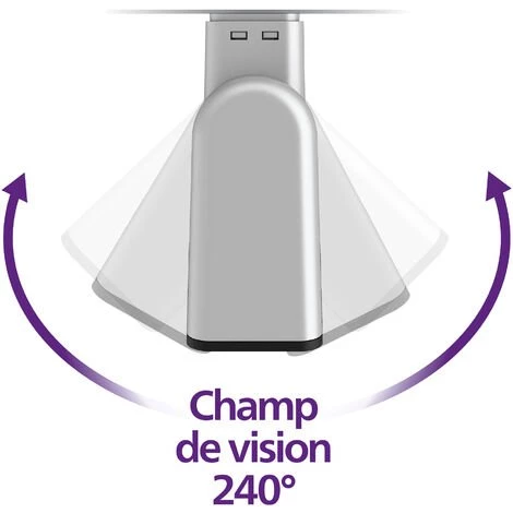 Notre caméra « voit » sur un axe horizontal de 110° degrés, c’est-à-dire de 55° degrés vers la gauche et de 55° vers la droite. En ajoutant à cette couverture un champ de vision élargi à 130°, vous disposez d’un champ visuel sans angle mort de 240°.