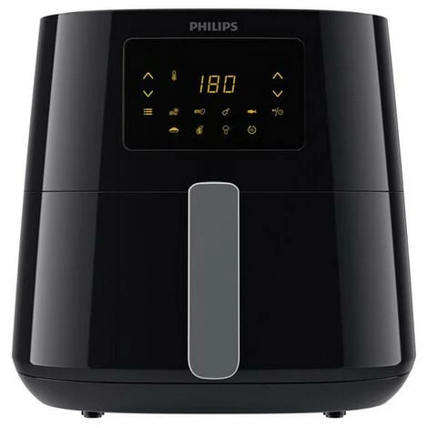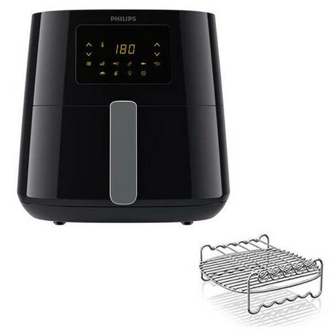 Friteuse Airfryer Essential Philips HD9270.96. Les frites les plus savoureuses avec jusqu’à 90% de matières grasses en moins ! (comparé à des frites fraîches cuites dans une friteuse Philips standard). Airfryer : une technologie qui se perfectionne depuis plus de 10 ans. Technologie brevetée Rapid Air permettant d’utiliser de l’air chaud pour frire, cuire, griller, rôtir et réchauffer tous vos plats et snacks préférés. Des recettes personnalisées selon vos préférences et des plats maison, en toute simplicité.Téléchargez l?application NutriU, recevez des recommandations de recettes quotidiennes qui tiennent compte des préférences de votre famille. Les recettes de l’application sont choisies par des experts en nutrition. Plus vous utilisez NutriU, mieux l’application adaptera ses idées de recettes à vos besoins. Trouvez l’inspiration auprès d’autres cuisiniers et cuisinières, et suivez des personnes aux goûts proches des vôtres. Écran tactile avec 7 préréglages : appuyez sur un bouton pour cuisiner. Les programmes préréglés permettent de cuire des en-cas surgelés, des frites fraîches, de la viande, du poisson, des pilons de poulet, des gâteaux et même des légumes grillés. Sa conception exclusive en étoile fait circuler l’air chaud afin d’obtenir de délicieux aliments croustillants à l’extérieur et tendres à l’intérieur, le tout avec très peu d’huile ajoutée. Passez à table quand vous êtes prêt. Sélectionnez le mode de Maintien au chaud pour maintenir vos aliments à la température idéale jusqu’à 30 minutes. Poignée froide pour une prise en main facile du panier. Le panier QuickClean de l’Airfryer est doté d’un revêtement anti-adhésif facilitant le nettoyage. La friture à l’air vous épargne les odeurs de la friture traditionnelle dans la maison. Livrée avec une grille double niveau supplémentaire avec accessoire brochettes.