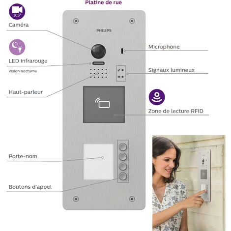 La solution de contrôle d’accès Philips WelcomeHive Pro propose un accès simplifié et sécurisé par RFID à vos bâtiments. Sa commande d’ouverture ainsi que sa vision nocturne permettent de contrôler de jour comme de nuit tous vos accès et d’accueillir simplement vos visiteurs. Grâce à la fiabilité et le design de ses produits, Philips apporte aux utilisateurs ainsi qu’aux installateurs la tranquilité d’esprit et une expérience unique.