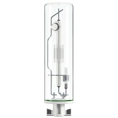 Lampe à décharge aux halogénures métalliques céramique miniaturisée, à haut rendement, à une seule extrémité, produisant une lumière blanche éclatante.