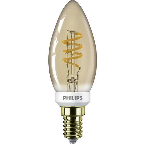 Lampe bougie LED Vintage Philips avec culot E14, or (1800K), dim standard Ce texte a été traduit par une machine.