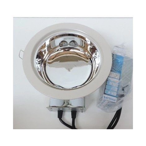 Downlight fluo 2x26W Ø 235m blanc cassé avec lampes blanc neutre 4000K culot G24q-3 4 broches et ballast elec HF 230V FBH024 Philips 885114