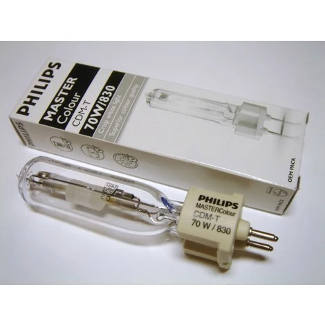 G12 / A / 70 watts / 3000 K / 6600 Lumens / 10000h. Max. 1 x 70 Watt. Indice de protection: IP20.