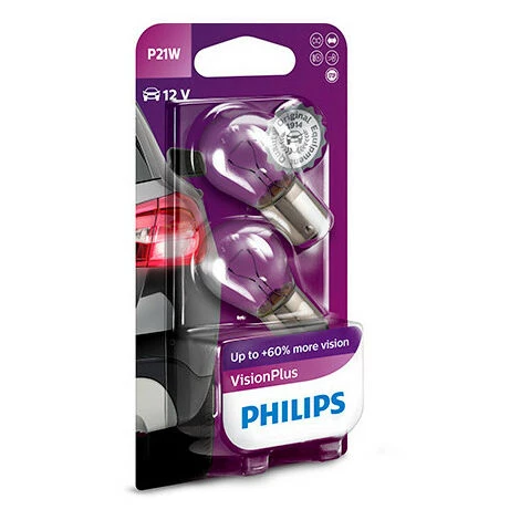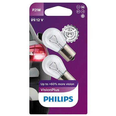 - Éclairage automobile : 2 Ampoules Vision Plus P21W – 12 V – BA15s – 21W – Clignotant – Stop – Feux de route – Antibrouillard – Feux de recul – Philips