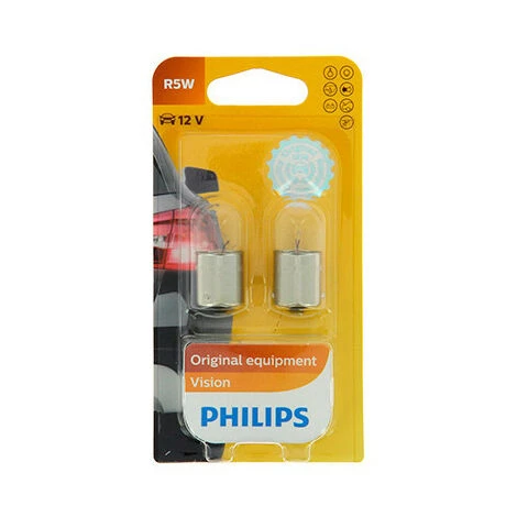 - Éclairage automobile : 2 Ampoules Vision R5W – 12 V – BA15s – 5W – Veilleuses – Eclairage de plaque – Plafonnier – Boîte à gants – Coffre – Philips