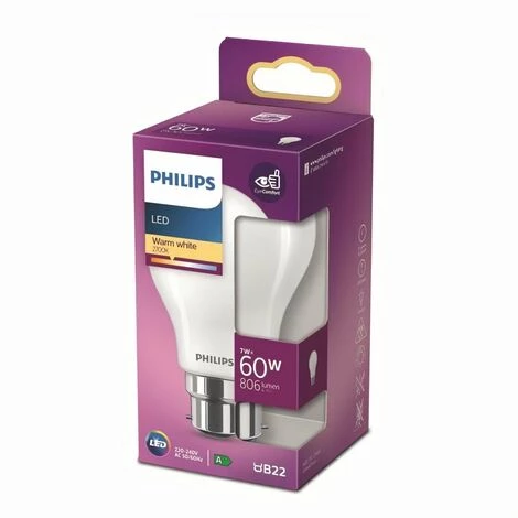 Philips ampoule LED Equivalent 60W B22 Blanc chaud non dimmable, verre