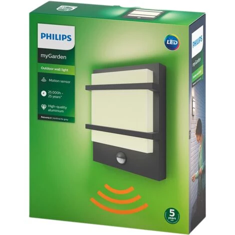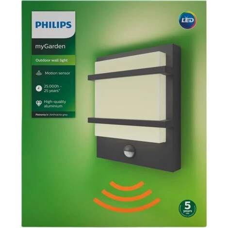 Petronia est une applique moderne avec détecteur de Philips. Cette applique est spécialement conçue pour une utilisation extérieure et est parfaite pour éclairer la porte d’entrée ou le jardin. La lampe est équipée d’un détecteur de mouvement, vous ne serez donc jamais dans l’obscurité. La lampe LED intégrée garantit non seulement que vous apprécierez votre toute nouvelle lampe pendant une très longue période, mais offre également une solution écologique. Vous cherchez plus d’éclairage pour votre jardin? Consultez l’intégralité de notre gamme d’éclairage extérieur ou visitez l’un de nos magasins Brico et BricoPlanit.