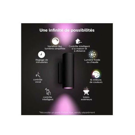 Philips – MyGarden Creek Applique Murale, Noir, Jardin Et Terrasse, 24x18x20, Lumière Chaude