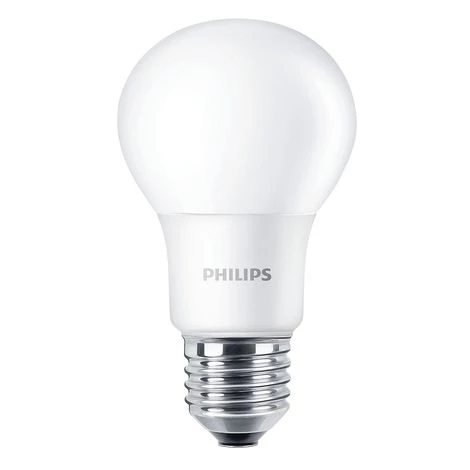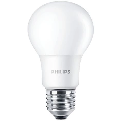 Philips CorePro. Puissance de l’ampoule: 8 W, Puissance ampoule équivalente: 60 W, Type de culot: E27. Classe d’efficacité énergétique: A+. Flux lumineux: 806 lm, Durée de vie de la lampe: 15000 h, Couleur de la lumière: Blanc chaud, Température de couleur: 2700 K, Angle du faisceau: 200°, Indice de rendu des couleurs (IRC): 80, Facteur de puissance: 0,5