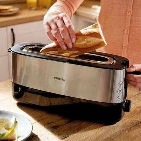 Un grille-pain en inox à fente longue ultra-large offrant 8 niveaux de dorage, pour du pain uniformément grillé à votre convenance, quels que soient son type et vos goûts. L’accessoire réchauffe-viennoiseries intégré est adapté à tous types de produits, du petit pain au croissant.