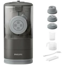 - PastaMaker Viva HR2334/12, 4 accessoires de forme (spaghetti, grafucine, Penne/Maccaroni/Rigatoni, Lasagnes/cannelloni/raviolis), Bol gradué, Set de nettoyage, Livre de recettes.