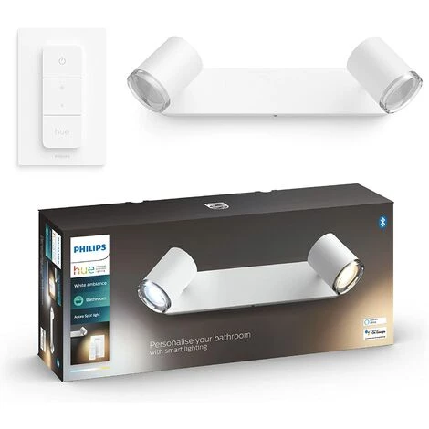 Le plafonnier Adore Philips Hue White Ambiance éclaire la pièce avec ses deux spots. Ses recettes lumineuses intégrées stimulent votre énergie et votre concentration, ou favorisent la lecture et la détente. Contrôlez instantanément la luminosité via son Hue Dimmer switch ou par connexion Bluetooth. Pour accéder à d’autres fonctionnalités, associez-lui un Hue Bridge.