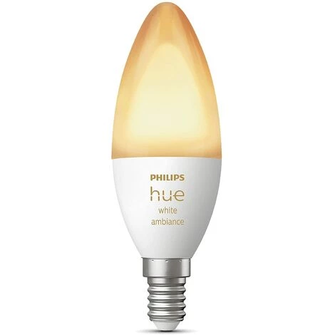 Ajoutez une ampoule flamme connectée variant d’un blanc chaud à un blanc froid pour vous aider à vous détendre, à lire, à vous concentrer ou à vous stimuler. Contrôlez-la instantanément via Bluetooth dans une pièce ou jumelez-la avec un Hue Bridge pour déverrouiller l’ensemble des fonctions.