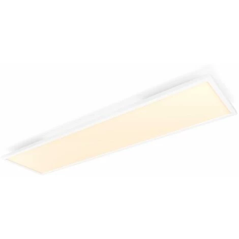 Doté de recettes lumineuses intégrées, le panneau rectangulaire blanc Aurelle Philips Hue White Ambiance diffuse une agréable lumière blanche chaude à froide. Vous pouvez contrôler instantanément la luminosité via son variateur Hue ou l’application Hue Bluetooth. Pour accéder à toutes les fonctionnalités d’éclairage connecté, associez-lui un Philips Hue Bridge.