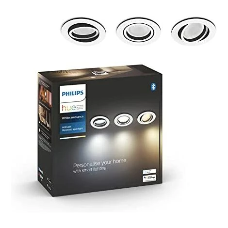 Le spot à encastrer Milliskin Philips Hue White Ambiance en finition aluminium s’intègre parfaitement dans votre intérieur, où il diffuse une lumière blanche plus ou moins chaude. Contrôlez instantanément la luminosité par connexion Bluetooth ou déverrouillez d’autres fonctionnalités d’éclairage connecté avec un Hue Bridge.