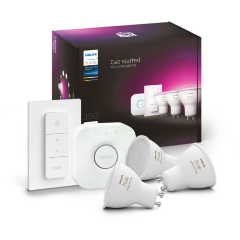 Ajoutez une couleur d’ambiance à n’importe quelle pièce avec le kit de démarrage Philips Hue White and Color Ambiance. Ce kit comprend 3 ampoules couleur connectées et un pont Hue Bridge, ce qui vous offre un contrôle total des éclairages, l’accès à l’application Hue et une infinité de fonctionnalités.