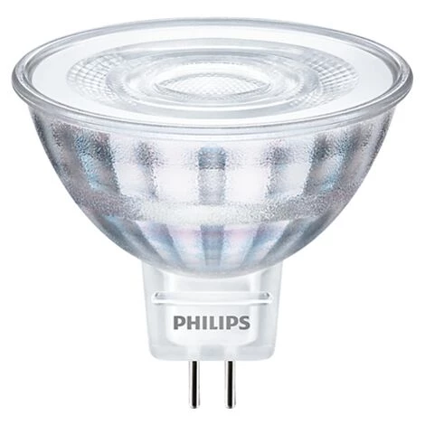Ampoule LED Philips, douille GU5.3, puissance 5W (sortie 35W), lumière chaude 2700K, non modifiable, classe énergétique A+.