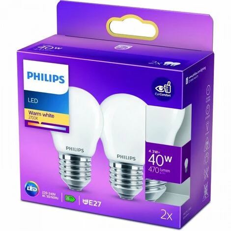 LED Classic 40W Sphérique E27 Blanc Chaud Dépolie Non Dimmable Lot de 2