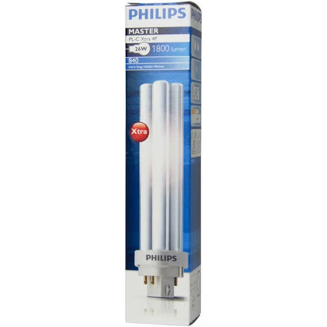 Lampesdirect ® est le grossiste de Ampoules Basse Consommation (CFL) | Chez Lampesdirect, le « Philips MASTER PL-C Xtra 26W – 840 Blanc Froid | 4 Pin(EAN: 8711500898920) » est particulièrement bon marché et peut être livré directement du stock ! Ce produit Philips a une puissance de 26 watts ( le watt correspond à la puissance de la lampe et indique la quantité d’énergie qu’elle consomme ). Cette ampoule a une douille G24q-3.Toutes les sources de lumière ont une douille par laquelle la lampe (source de lumière) reçoit le courant nécessaire pour produire de la lumière. La douille permet également de remplacer plus facilement la lampe si elle se casse. Le produit a le code couleur suivant : 840, en Kelvin c’est k. Le type de ce produit est :PL-C. Le produit porte le label de qualité « MASTER » et la série de produits « PL-C ». Cette Ampoule a 1800 lumens avec un rapport lumen/watt de 69. Le lumen est la mesure de la quantité de lumière produite par l’ampoule ( les gens avaient l’habitude de regarder la puissance en watts, mais cela ne signifie plus grand-chose aujourd’hui pour choisir une Ampoule). Ce produit Philips possède un label d’efficacité énergétique : « G ».La variation des ampoules LED vous permet de mieux contrôler l’atmosphère adéquate dans votre zone d’application. Cette ampoule est-elle variable ? La réponse est : Oui, dimmable. Cette Ampoule a une valeur de rendu de couleur (RA) de 80-89 – Bon rendu des couleurs. Ce produit fait partie du groupe : « Philips PL-C Xtra 4P (MASTER) » Ce produit peut être classé dans les catégories suivantes : « Ampoule fluocompacte » > « Ampoules à 4 broches ». Le nom officiel du fabricant est « MASTER PL-C Xtra 26W/840/4P 1CT/5X10BOX » Les ampoules à économie d’énergie sont des sources lumineuses qui produisent de la lumière en remplissant un tube de verre de gaz. Ces lampes sont également appelées lampes fluorescentes compactes (LFC). Pendant longtemps, les ampoules à économie d’énergie ont été l’alternative la plus utilisée aux