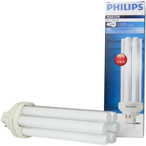 Lampesdirect ® est le grossiste de Ampoules Basse Consommation (CFL) | Chez Lampesdirect, le « Philips MASTER PL-T Top 42W – 840 Blanc Froid | 4 Pin(EAN: 8711500610089) » est particulièrement bon marché et peut être livré directement du stock ! Ce produit Philips a une puissance de 42 watts ( le watt correspond à la puissance de la lampe et indique la quantité d’énergie qu’elle consomme ). Cette ampoule a une douille GX24q-4.Toutes les sources de lumière ont une douille par laquelle la lampe (source de lumière) reçoit le courant nécessaire pour produire de la lumière. La douille permet également de remplacer plus facilement la lampe si elle se casse. Le produit a le code couleur suivant : 840, en Kelvin c’est k. Le type de ce produit est :PL-T. Le produit porte le label de qualité « MASTER » et la série de produits « PL-T ». Cette Ampoule a 3000 lumens avec un rapport lumen/watt de 71. Le lumen est la mesure de la quantité de lumière produite par l’ampoule ( les gens avaient l’habitude de regarder la puissance en watts, mais cela ne signifie plus grand-chose aujourd’hui pour choisir une Ampoule). Ce produit Philips possède un label d’efficacité énergétique : « G ».La variation des ampoules LED vous permet de mieux contrôler l’atmosphère adéquate dans votre zone d’application. Cette ampoule est-elle variable ? La réponse est : Oui, dimmable. Cette Ampoule a une valeur de rendu de couleur (RA) de 80-89 – Bon rendu des couleurs. Ce produit fait partie du groupe : « Philips PL-T TOP 4P (MASTER) » Ce produit peut être classé dans les catégories suivantes : « Ampoule fluocompacte » > « Ampoules à 4 broches ». Le nom officiel du fabricant est « MASTER PL-T TOP 42W/840/4P 1CT/5X10BOX » Les ampoules à économie d’énergie sont des sources lumineuses qui produisent de la lumière en remplissant un tube de verre de gaz. Ces lampes sont également appelées lampes fluorescentes compactes (LFC). Pendant longtemps, les ampoules à économie d’énergie ont été l’alternative la plus utilisée aux