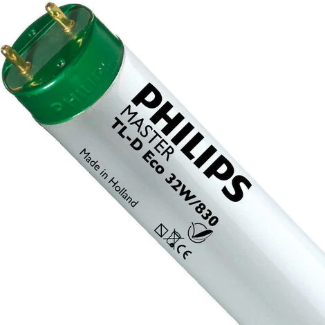 Lampesdirect ® est le grossiste de Tubes Fluorescents / Tubes Neon | Chez Lampesdirect, le « Philips MASTER TL – D ECO 32W – 830 Blanc Chaud | 120cm(EAN: 8711500264589) » est particulièrement bon marché et peut être livré directement du stock ! Ce produit Philips a une puissance de 32 watts ( le watt correspond à la puissance de la lampe et indique la quantité d’énergie qu’elle consomme ). Cette ampoule a une douille G13.Toutes les sources de lumière ont une douille par laquelle la lampe (source de lumière) reçoit le courant nécessaire pour produire de la lumière. La douille permet également de remplacer plus facilement la lampe si elle se casse. Cette ampoule a une forme de « T8 ». Le produit a le code couleur suivant : 830, en Kelvin c’est k. Ce tube fluorescent a une longueur de 120cm / 1200 mm Le type de ce produit est :TubeTL-D / T8 Tube. Le produit porte le label de qualité « MASTER » et la série de produits « Eco ». Cette Ampoule a 3000 lumens avec un rapport lumen/watt de 94. Le lumen est la mesure de la quantité de lumière produite par l’ampoule ( les gens avaient l’habitude de regarder la puissance en watts, mais cela ne signifie plus grand-chose aujourd’hui pour choisir une Ampoule). Ce produit Philips possède un label d’efficacité énergétique : « F ».La variation des ampoules LED vous permet de mieux contrôler l’atmosphère adéquate dans votre zone d’application. Cette ampoule est-elle variable ? La réponse est : Oui, avec ballast dimmable uniquement. Cette Ampoule a une valeur de rendu de couleur (RA) de 80-89 – Bon rendu des couleurs. L’angle du faisceau de cette lampe est de 360°. Un degré de faisceau est également appelé angle de faisceau et indique l’angle du faisceau lumineux provenant d’une source lumineuse. Ce faisceau crée une surface sur laquelle la lumière d’une source lumineuse brille réellement. Ce produit fait partie du groupe : « Philips TL-D Eco (MASTER) » Ce produit peut être classé dans les catégories suivantes : « Tubes Fluorescents » > « Tubes