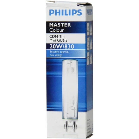 Lampesdirect ® est le grossiste de Lampes à Décharge | Chez Lampesdirect, le « Philips MASTERColour GU6.5 CDM-Tm Mini 20W – 830 Blanc Chaud(EAN: 8727900890839) » est particulièrement bon marché et peut être livré directement du stock ! Ce produit Philips a une puissance de 20 watts ( le watt correspond à la puissance de la lampe et indique la quantité d’énergie qu’elle consomme ). Cette ampoule a une douille GU6.5.Toutes les sources de lumière ont une douille par laquelle la lampe (source de lumière) reçoit le courant nécessaire pour produire de la lumière. La douille permet également de remplacer plus facilement la lampe si elle se casse. Cette ampoule a une forme de « Tubulaire ». Le produit a le code couleur suivant : 830, en Kelvin c’est k. Le type de ce produit est :CDM-TM. Cette Ampoule a 1800 lumens avec un rapport lumen/watt de 90. Le lumen est la mesure de la quantité de lumière produite par l’ampoule ( les gens avaient l’habitude de regarder la puissance en watts, mais cela ne signifie plus grand-chose aujourd’hui pour choisir une Ampoule). Ce produit Philips possède un label d’efficacité énergétique : « G ». Cette Ampoule a une valeur de rendu de couleur (RA) de 80-89 – Bon rendu des couleurs. Ce produit fait partie du groupe : « Philips MASTERColour CDM-TM Mini » Ce produit peut être classé dans les catégories suivantes : « Lampes à Décharge » > « Ampoules à décharge PGJ5 & GU6.5 ». Le nom officiel du fabricant est « MASTERC CDM-Tm Mini GU6.5 20W/830 1CT/12 » Les lampes à décharge émettent une grande quantité de lumière. Cela est dû au fait qu’elles sont pressurisées par un gaz ionisé. Les lampes à décharge sont également appelées lampes HID (high intensity discharge). Les lampes à décharge se composent d’un tube à décharge dans lequel se trouvent une anode et une cathode. Le tube lui-même est fabriqué en verre de quartz pour résister aux températures élevées de fonctionnement des lampes. Le tube contient un gaz spécifique (par exemple, un gaz halogène, sodium ou