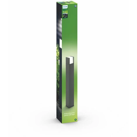 Le lampadaire LED d’extérieur Philips Arbor en gris anthracite contient un cube de lumière suspendu dans un support en aluminium moulé sous pression de longue durée. La conception ingénieuse projette des faisceaux de lumière blanche froide diffuse sur les allées et les espaces extérieurs ouverts.