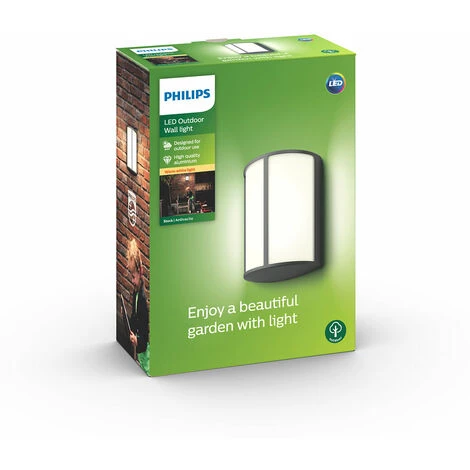 L’applique murale d’extérieur à LED Philips Stock gris anthracite est fabriquée en aluminium moulé sous pression durable. La conception distinctive en demi-lanterne maximise la distribution de la lumière pour égayer votre espace extérieur avec beaucoup de lumière blanche chaude diffuse