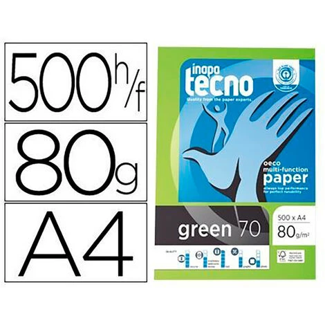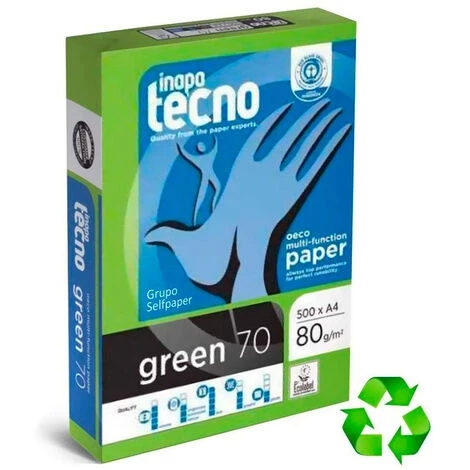 Pack 500 feuilles de papier recyclé dina4 80g / m2 multifonction, techno green 70..