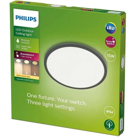 Philips SuperSlim plafonnier LED 15W, Noir, IP54