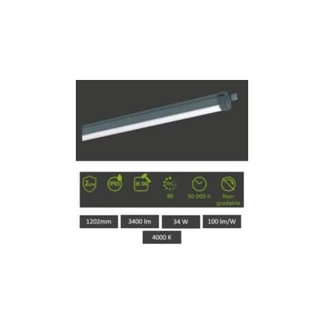 La Réglette étanche Mazda WT007C 364742 bénéficie d’un design compact et discret. Cette réglette Led étanche (IP65) est très efficace et parfaite pour les nouvelles installations, elle convient également idéalement pour remplacer les luminaires étanches conventionnels. Cette réglette Mazda 364742 multiplie les qualités : puissance de 34W, flux lumineux de 3400 lumens, température de couleur de 4000K, IP65 et durée de vie de 50 000 heures. Optez pour un éclairage performant et une longue durée de vie tout en réalisant jusqu’à 60% d’économies d’énergie par rapport à un luminaire conventionnel. Ce produit est également disponible en longueur 1500 mm sous la référence 364759.