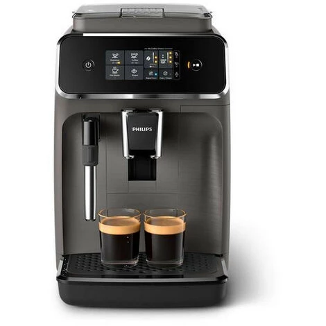 Le robot café Séries 2200 Philips EP2224.10 est un expresso broyeur entièrement automatique. Savourez des boissons en toute simplicité (2 boissons au choix). Que vous ayez envie d’un expresso, d’un café classique ou d’eau chaude, votre machine toute automatique vous prépare une tasse parfaite, en toute simplicité et en un rien de temps. Personnalisez facilement chaque boisson en réglant l’intensité (3 niveaux), la température et le volume de votre boisson grâce au Menu My Coffee Choice.Broyeur 100% céramique pour une mouture uniforme sans surchauffer le café, pour un expresso impeccable. La céramique garantit en outre une durée de vie prolongée et un fonctionnement totalement silencieux.Cette machine offre 12 niveaux différents de mouture, de la plus fine pour un expresso intense à la plus grosse, pour un café crème léger. Option »Café Moulu » pour vous permettre notamment de préparer un café décaféiné quand vous le souhaitez. Le mousseur à lait classique, également appelé Pannarello par les baristas vous permet de préparer une onctueuse mousse de lait pour votre cappuccino ou votre latte machiatto.