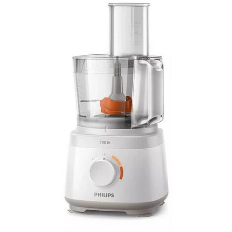 Robot multifonctions Daily Collection Philips HR7320/00. Des repas maison préparés en toute simplicité tous les jours ! Un robot tout-en-un pratique : pétrit, fouette et râpe. Doté de 19 fonctions pour un nombre illimité de préparations : plats, pains, sauces et plus encore. Bol 2.1 L (capacité utile 1.5 L) pour préparer jusqu’à 5 portions. Grande cheminée de remplissage pour une préparation rapide et moins de pré-coupes. Codes couleur pour les vitesses et accessoires pour un assemblage simple et rapide. Lames inox en S pour mixer, hacher grossièrement ou finement les ingrédients. Encombrement réduit et rangement de tous les accessoires dans le bol.