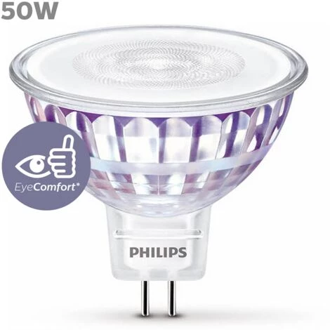 Cette ampoule de Philips convient pour des luminaires à douille GU5.3 et possède un diamètre de 5 centimètres. L’ampoule LED de 7 watts produit une lumière blanc froid de 660 lumens. Elle possède une durée de vie de 15.000 heures. Il est possible de faire varier son intensité à l’aide d’un variateur externe.