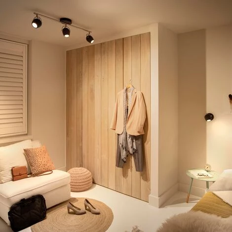 Rivano est un spot noir de Philips, qui s’intègre parfaitement dans tous les intérieurs. La lampe LED intégrée est conçue pour le confort des yeux et produit dès lors un éclairage agréable. Un spot se fixe aisément au plafond ou sur un mur. Comme il est facile à incliner ou à orienter, vous pouvez déterminer avec précision ce qu’éclaire le faisceau lumineux. La lampe LED vous permettra de profiter très longtemps de votre tout nouveau luminaire, mais elle est aussi écologique. Vous recherchez d’autres luminaires de Philips pour toutes vos pièces ? Découvrez notre vaste assortiment de luminaires dans nos magasins Brico et BricoPlanit ainsi que sur notre site Internet.