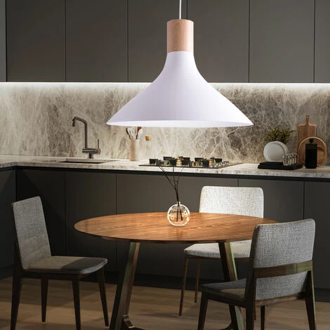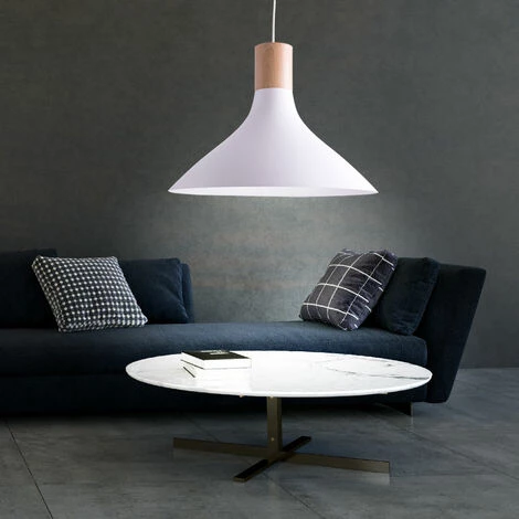 Description Suspension pour votre salon. L’abat-jour de cette lampe est composé d’un métal blanc et de bois. Cette lampe suspendue sera un nouvel accroche-regard dans le salon de votre choix. La lampe fait particulièrement bonne figure au-dessus de la table dans la salle à manger ou le salon. Equipé d’une douille E27, vous pouvez utiliser des lampes avec un maximum puissance de Insérez 60 watts dans la lampe et assurez ainsi un éclairage optimal. La source lumineuse n’est pas incluse dans la livraison. Détails lampe • type de lampe : lampe suspendue